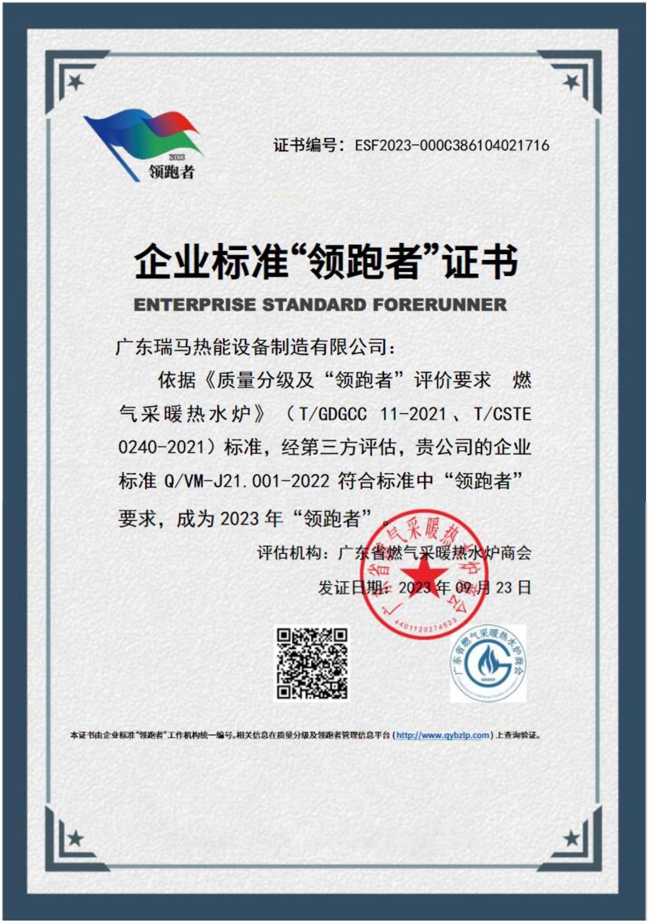 企業(yè)標(biāo)準(zhǔn)“領(lǐng)跑者”制度,通過高水平標(biāo)準(zhǔn)引領(lǐng),推動(dòng)行業(yè)發(fā)展升級(jí)。廣東瑞馬以VM-T1燃?xì)獠膳療崴疇t獲得企業(yè)標(biāo)準(zhǔn)“領(lǐng)跑者”證書,此次獲獎(jiǎng)不僅是國家權(quán)威機(jī)構(gòu)對(duì)瑞馬產(chǎn)品卓越性與領(lǐng)先性的認(rèn)可,還彰顯了瑞馬在國內(nèi)壁掛爐行業(yè)中的“領(lǐng)跑者”地位。